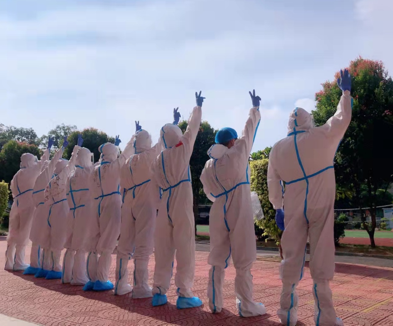 在30多度的高温下,集团志愿者们毅然穿上厚重的防护服,化身“大白”、“小蓝”,为心中的“红”,不怨其烦地挨家挨户为老人家讲解新冠防范知识、疫情防控卡口支援防疫宣传、协助查看健康码,检测体温,提醒过往群众带好口罩,引导群众自觉排队,保持距离。疫情当前,哪里有集结令,哪里就有他们,他们湿透的衣衫是他们使命必达的坚定决心,所展现的力量如点点萤火,光微而不弱。