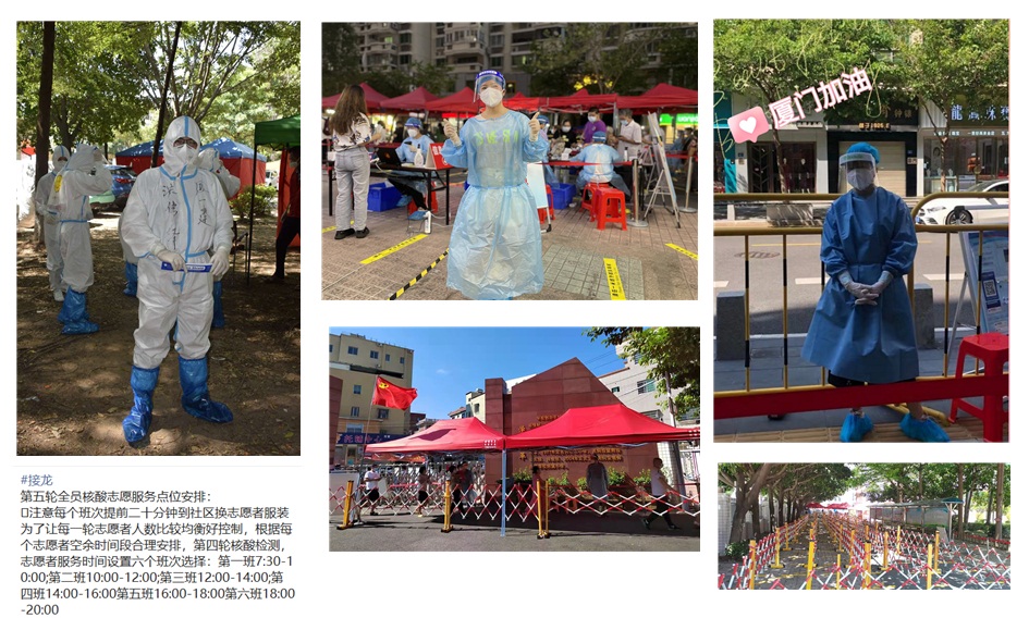 中秋前夕,一场突如其来的疫情打破节日欢快的氛围,面对疫情挑战,无数医护人员、志愿者投身抗击疫情第一线,为厦门筑起安全防线,厦门www.huatihui.com集团在厦员工叶祝庭、占娟兰、洪伟泽等人积极响应社区号召,加入抗疫自愿服务队伍中,为本次打赢疫情防控歼灭战贡献力量!