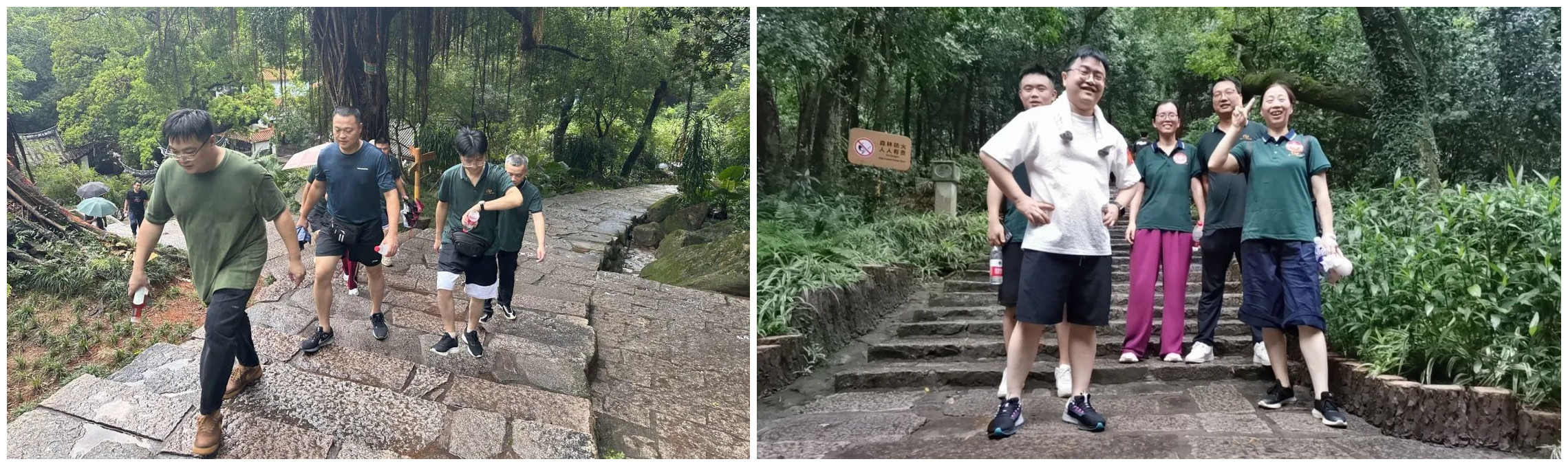 八月的鼓山秀木繁荫,野芳幽香,小伙们早早就在山脚下集合,各个摩拳擦掌,跃跃欲试,等待登山比赛发令枪打响,虽然在出发前鼓山意外地下起了倾盆大雨,导致山路湿滑,为登山增添了一些阻力,但小伙伴们的登山热情不减,没有丝毫退缩,步伐铿锵有力,尽自己所能一步一个脚印向上攀登。